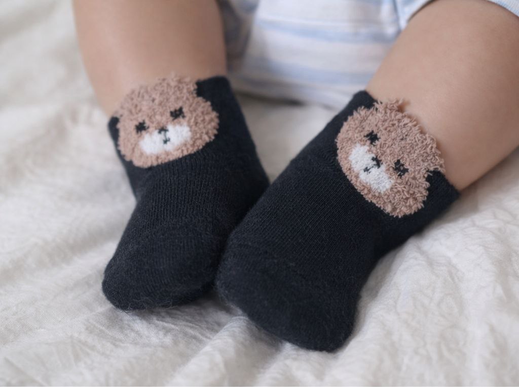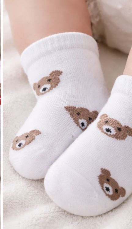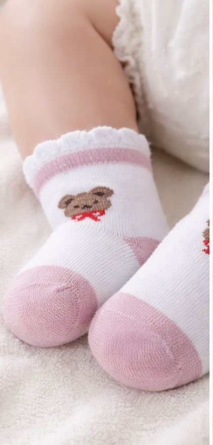 جوراب دخترانه نخ هندی درجه یک طرح تدی لب چین دار