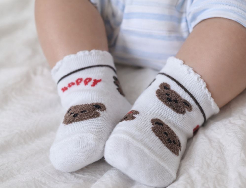 جوراب دخترانه نخ هندی درجه یک طرح تدی زمینه سفید