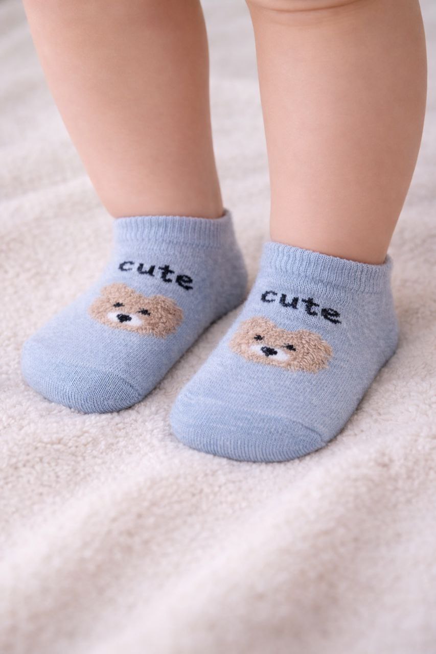 جوراب دخترانه نخ هندی درجه یک طرح تدی زمینه آبی
