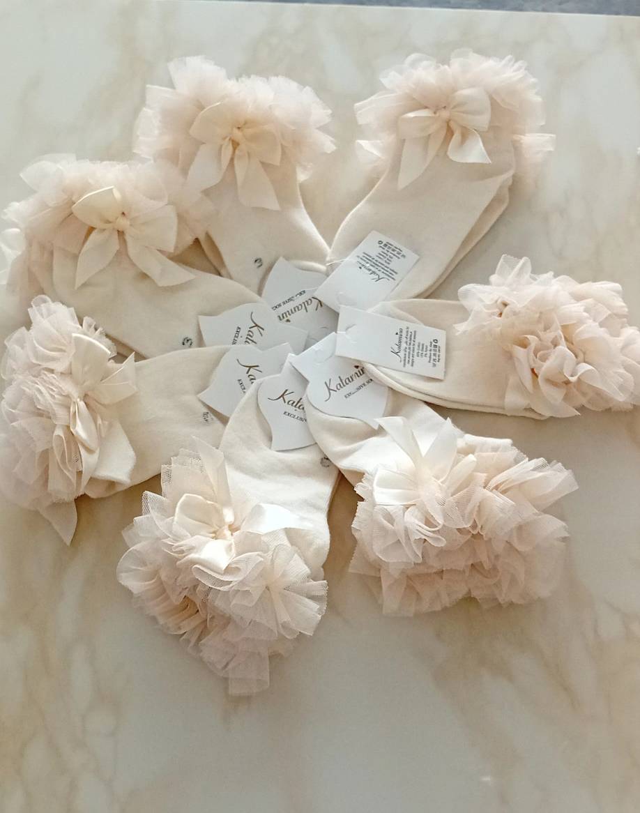 جوراب دخترانه نخ هندی درجه یک دانتل دار کرم