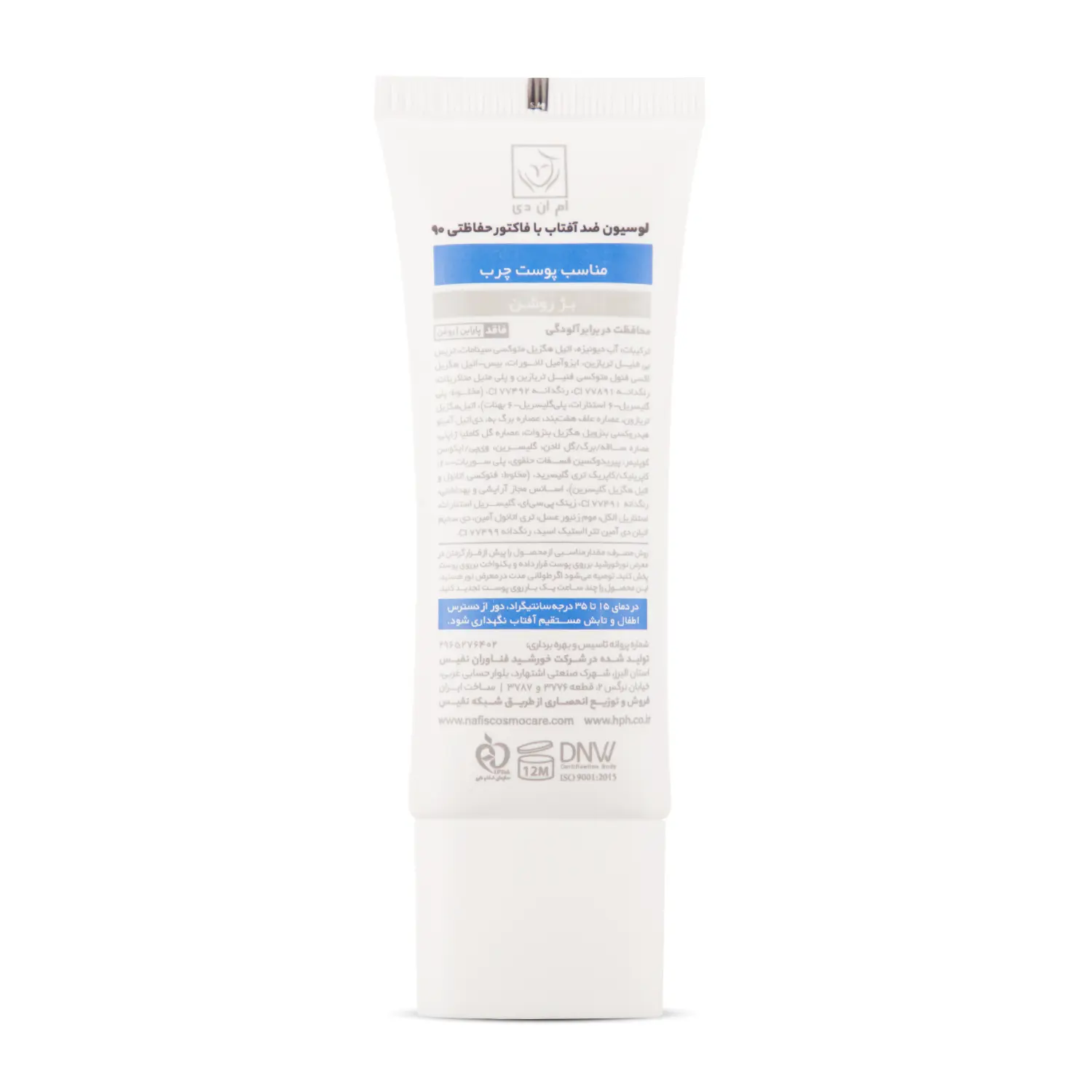 لوسیون ضد آفتاب (SPF 90) بژ روشن مناسب پوست چرب ام ان دی