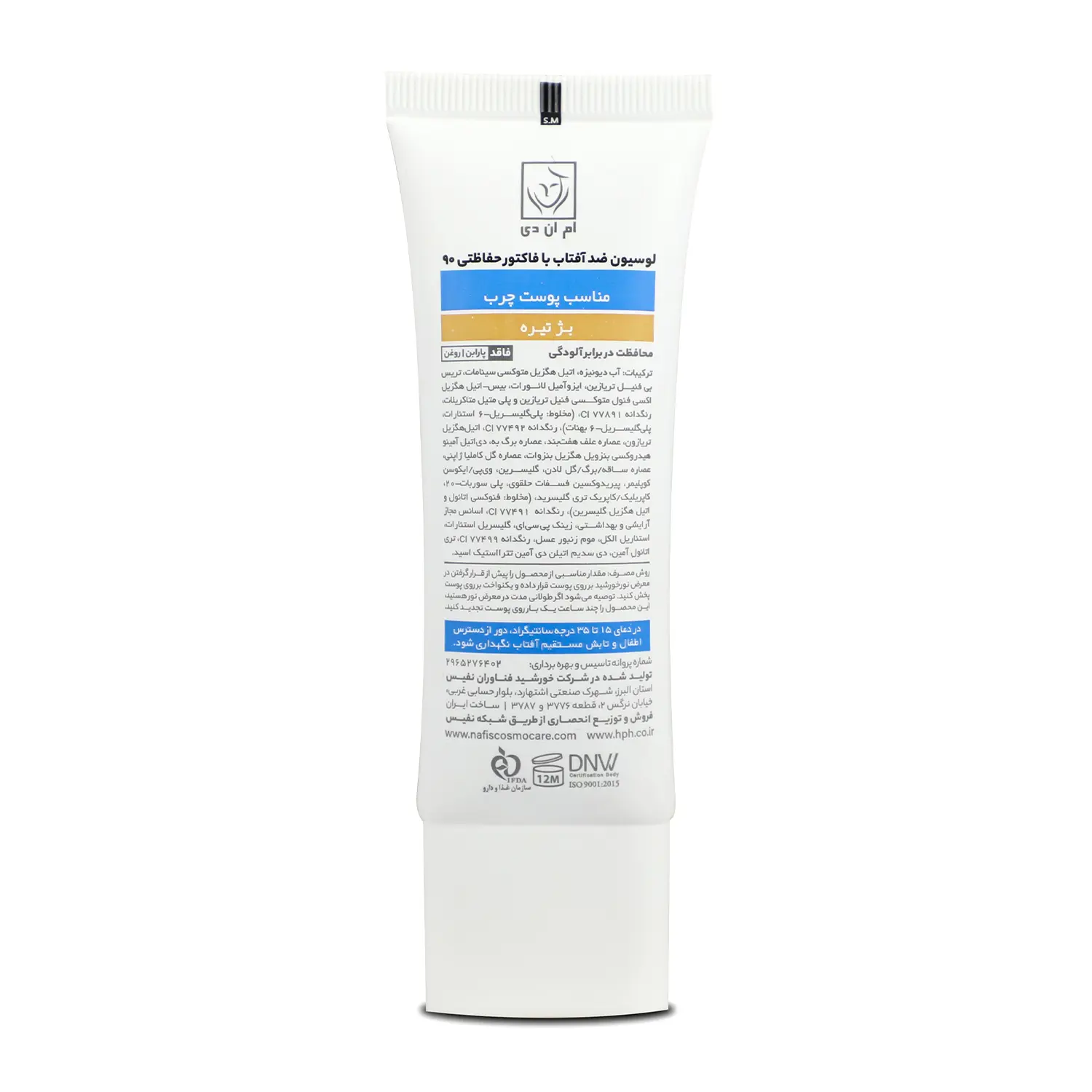 لوسیون ضد آفتاب (SPF 90) بژ تیره مناسب پوست چرب ام ان دی