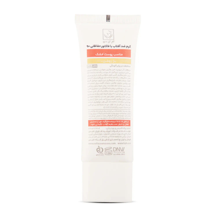 کرم ضد آفتاب (SPF 90) بـژ روشن مناسب پوست خشک ام ان دی