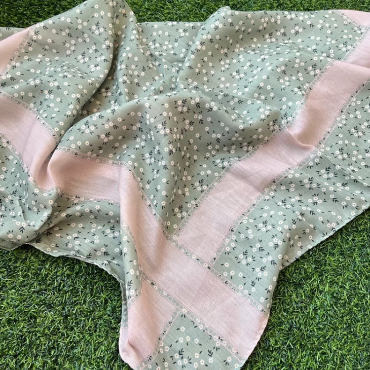 روسری مینی اسکارف نخی قواره طرح شکوفه بهاری