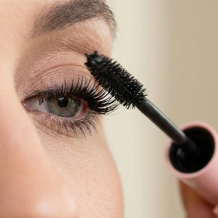 فرچه آغشته به مواد را بر روی مژههای پلک بالا قرار داده و از ریشه تا نوک آنها را با مواد بپوشانید. بهتر است ابتدا از فرچه حجمدهنده (فرچه با رنگ رُزگلد) استفاده کرده و سپس برای بلندکنندگی و حالت دادن به مژهها، از فرچه بلندکننده (فرچه با رنگ مشکی) استفاده کنید. همین روش مصرف را برای پلک پایین نیز انجام دهید. پیشنهاد میشود پیش از ریمل زدن، از فرکننده مژه نیز بهره بگیرید.