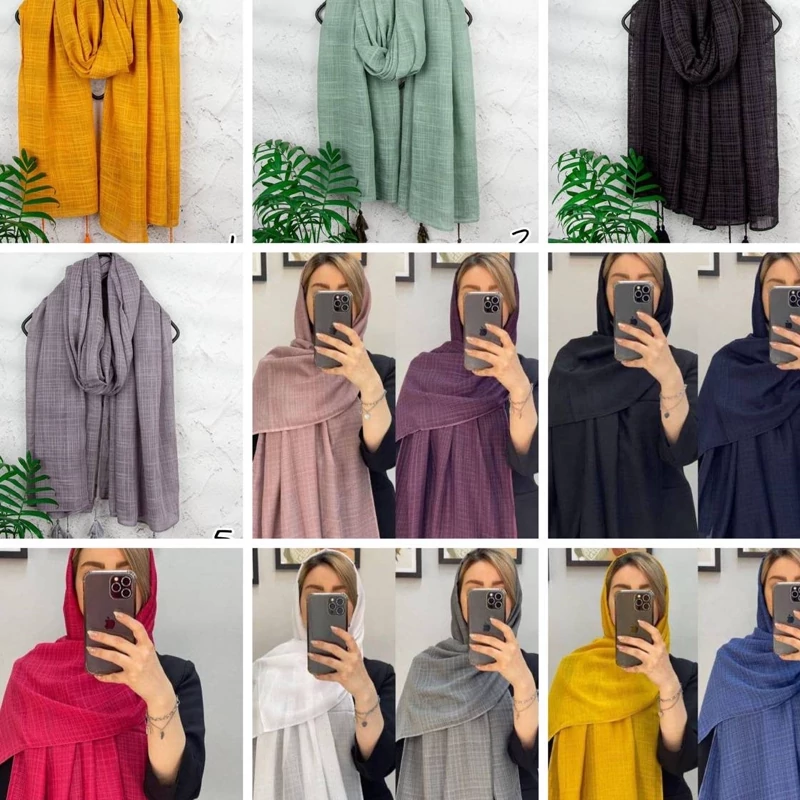 شال نخی لینن دور دوخت منگوله دار با کیفیت رنگبندی اندازه 80 در 190