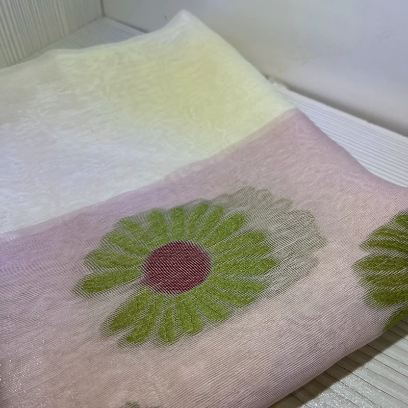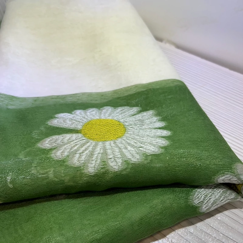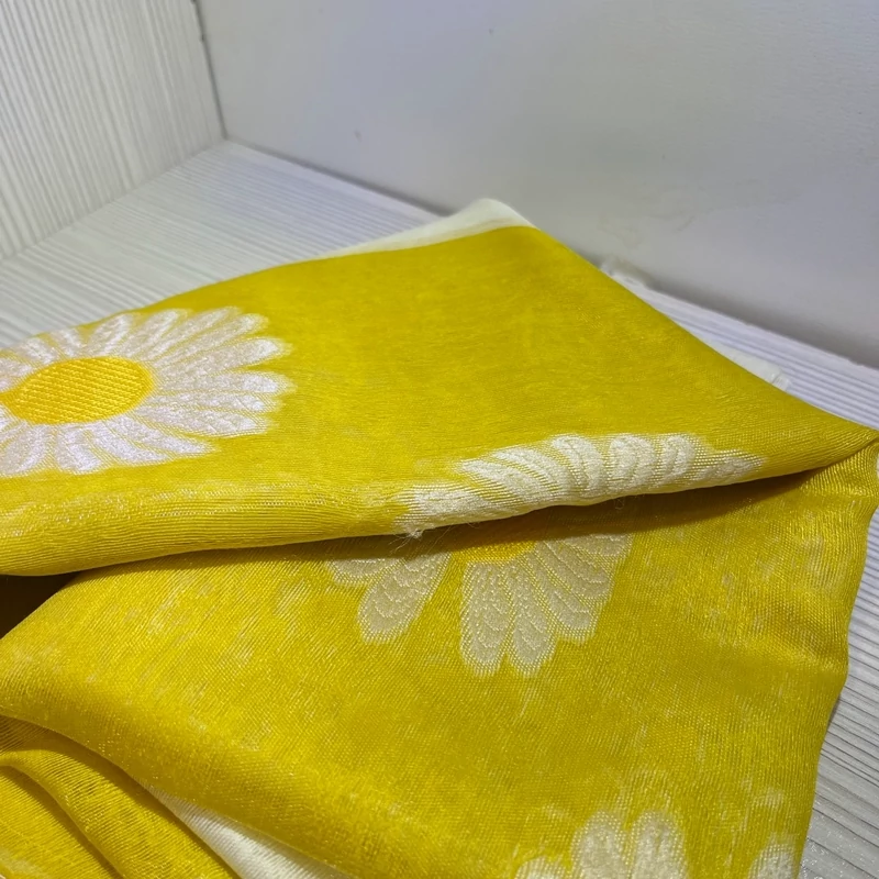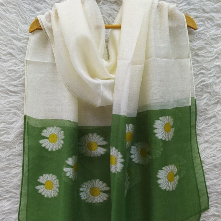 شال حریر ابریشم وارداتی مجلسی بابوبه با گل های برجسته گلدوزی شده